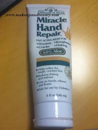Curel Hand & Cuticle Therapy. It helps dry hands & your nails too! No greasy feeling and it stays on, even after several hand washings! I buy mine at Walmart for about $4.50. Vaseline makes a similar product, which I like too!