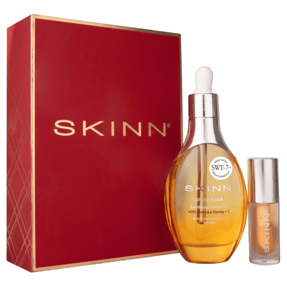 Ingredients: CARTHAMUS TINCTORIUS (SAFFLOWER) SEED OIL, LIMNANTHES ALBA (MEADOWFOAM) SEED OIL, ARGANIA SPINOSA (ARGAN) KERNEL OIL, OLEIC/LINOLEIC/LINOLENIC POLYGLYCERIDES, SWERTIA CHIRATA LEAF EXTRACT, ROSMARINUS OFFICINALIS (ROSEMARY) LEAF EXTRACT, COCOS NUCIFERA (COCONUT) OIL, LINUM USITATISSIMUM (LINSEED) SEED OIL, HYDROGENATED SOYBEAN OIL, HELIANTHUS ANNUUS (SUNFLOWER) SEED OIL, ORBIGNYA SPECIOSA KERNEL OIL, HONEY (MANUKA), HONEY EXTRACT, PROPOLIS EXTRACT, POLLEN EXTRACT, ROYAL JELLY EXTRACT, CANDIDA BOMBICOLA/GLUCOSE/METHYL RAPESEEDATE FERMENT, OLEA EUROPAEA (OLIVE) FRUIT OIL, ANGELICA GIGAS ROOT EXTRACT, LITHOSPERMUM ERYTHRORHIZON ROOT EXTRACT, GLYCYRRHIZA URALENSIS (LICORICE) ROOT EXTRACT, ASCORBYL ISOSTEARATE, ASCORBYL PALMITATE, HELICHRYSUM ITALICUM (IMMORTELLE) FLOWER OIL, HIPPOPHAE RHAMNOIDES (SEA BUCKTHORN) FRUIT OIL, OPUNTIA FICUS-INDICA (PRICKLY PEAR) SEED OIL, MELALEUCA ALTERNIFOLIA (SNOWFLOWER) LEAF EXTRACT, ALEURITES MOLUCCANUS (KENDI) SEED OIL, LUPINUS ALBUS (LUPINE) SEED OIL, VACCINIUM MYRTILLUS (BILBERRY) SEED OIL, TOCOPHEROL, CITRUS AURANTIUM PEEL OIL, CITRUS LIMON (LEMON) PEEL OIL, AQUA, LECITHIN, ISOPROPYL PALMITATE, GLYCERIN, CITRIC ACID, CITRAL, GERANIOL, HEXAMETHYLINDANOPYRAN, HEXYL CINNAMAL, LIMONENE, LINALYL ACETATE, LINALOOL, PINENE, BENZYL BENZOATE, POTASSIUM SORBATE, SODIUM BENZOATE, PHENOXYETHANOL, ETHYLHEXYLGLYCERIN, PARFUM SKINN DIVINE ELIXIR LIP OIL