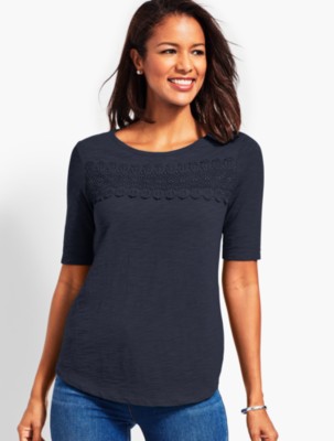 I don't own any lace white skirt, but I think it looks really nice with denim colored shirt. It makes it appopriate for casul days.