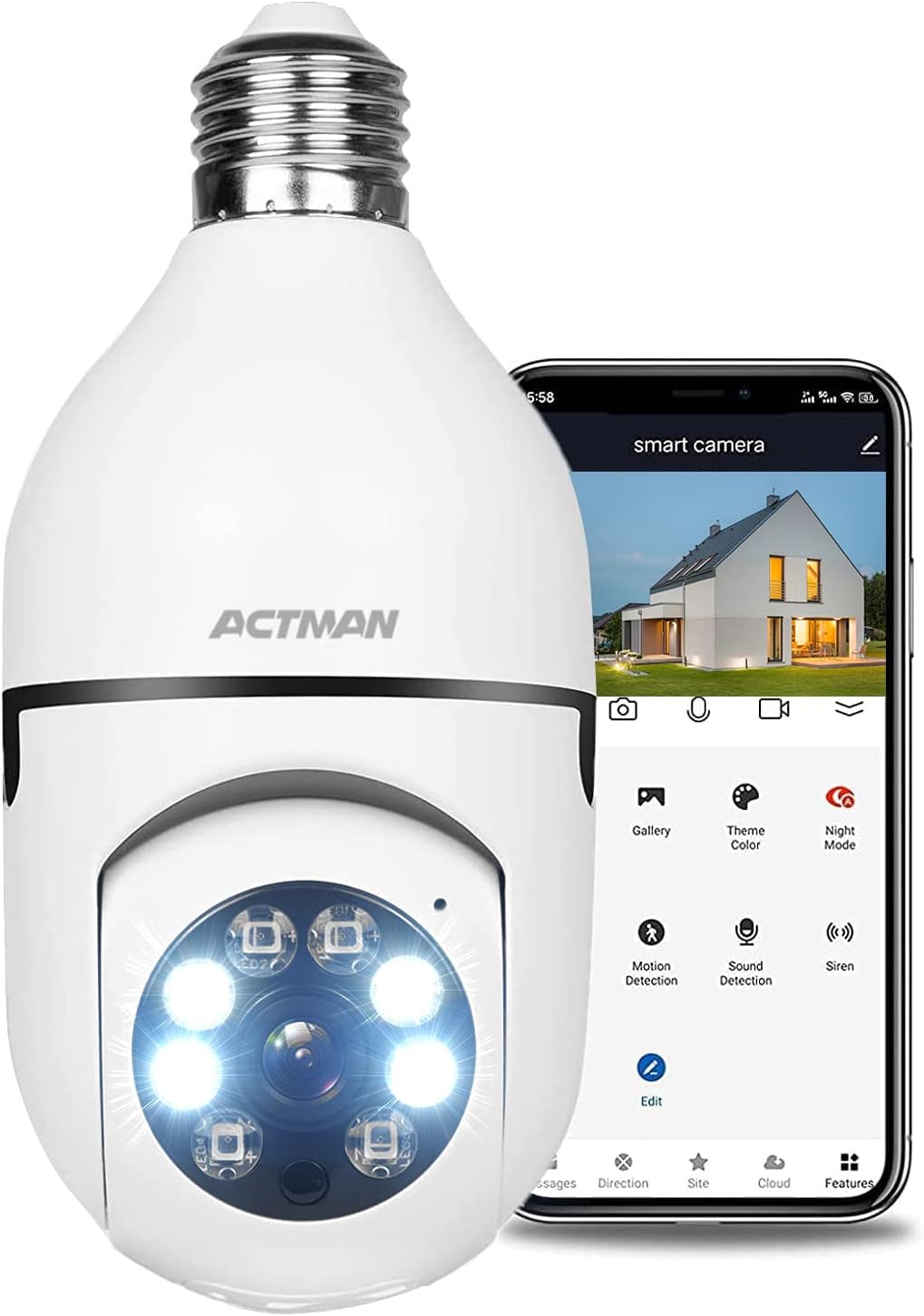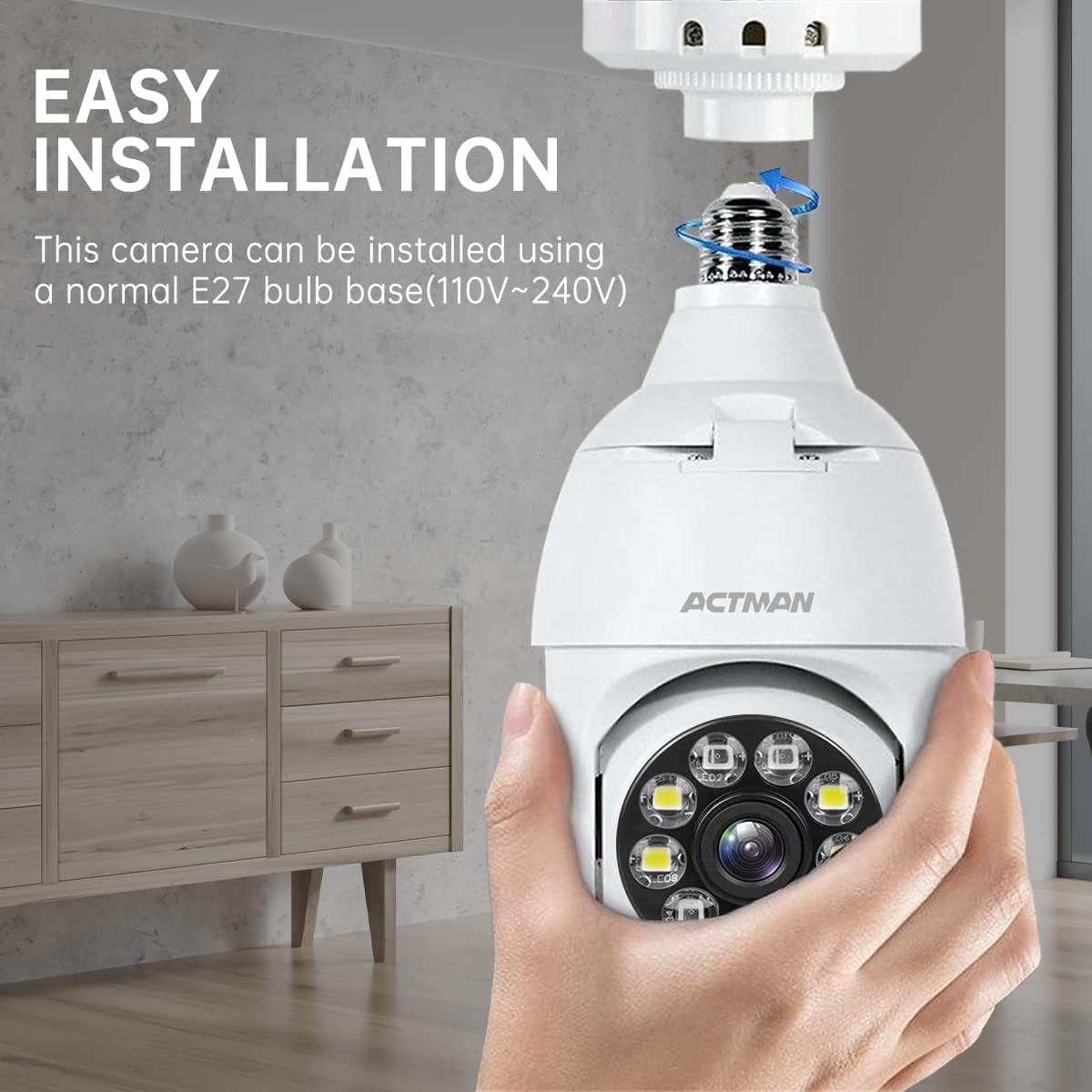"Light Bulb 1080P Security Camera, Smart Light Bu lb Security Camera PTZ Dome Camera with Color Night Vision, Motion Detection, 2-Way Audio, Remote Access Support Cloud Storage & SD Card "