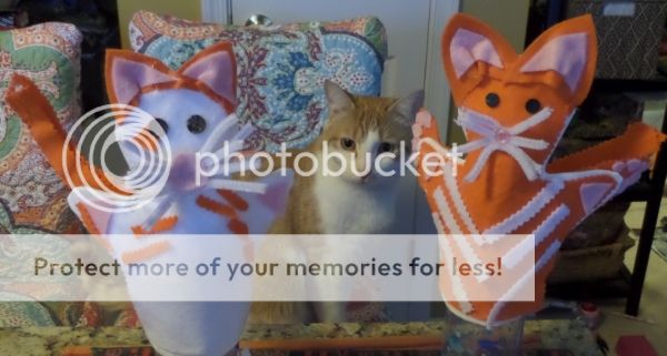This is my naughty orange kitty, if you've seen him in my "Felonious Feline" thread. He hopped up on the counter stool (which he knows he's not supposed to but does it about three hundred times a day{#emotions_dlg.glare}) to inspect his doppelganger. I think the likeness is remarkable! {#emotions_dlg.laugh}