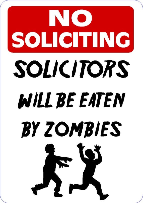 A Google image search for "No Solictors" or "No Soliciting" signs come up with a bunch of funny ones. I'm lucky, our neighborhood has signs at both entrances so we don't have many.