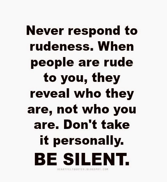 I read a quote that said something like: When someone says something to you, that is their gift to you. If you refuse to accept the gift of an insult or rudeness, that means the gift remains in the hands of the giver. Where it belongs.