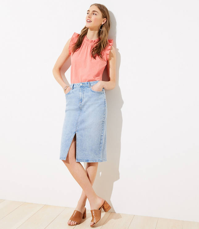 I'm 5' 4" and recently bought this denim pencil skirt. It has the traditional back pockets, etc..