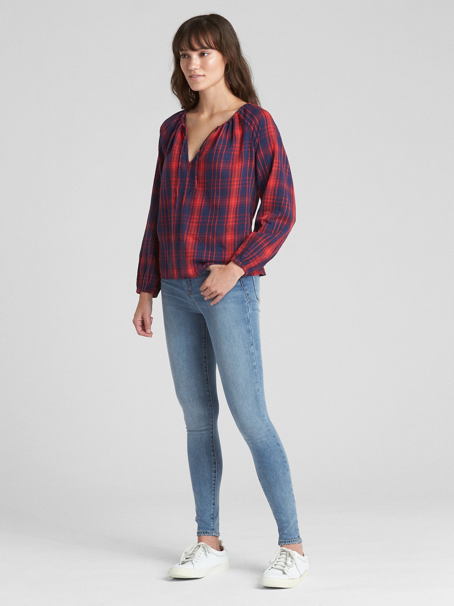 RE plaids, this is at GAP, in two colors- in the description it says "boxy", but it looks more feminine than your average plaid shirt, IMO.