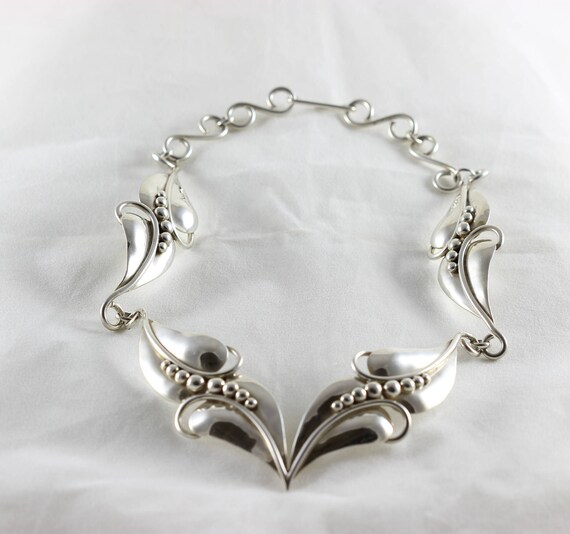 @HoovermomSterling Silver Collar Bib Leafs Necklace 16 inch Necklace