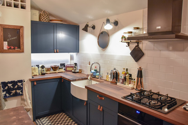 What do you think of the materials used together? Two kinds of tile, butcher block, wood, and brick.