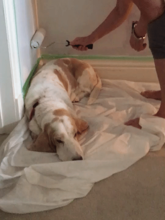 @151949 Oh no! What a mess! That's one reason I thought about boarding Henry, my cat. I was afraid he might rub against the wall and get paint on him. I don't think he would stay around the painters though. I'm not worried about my dog.