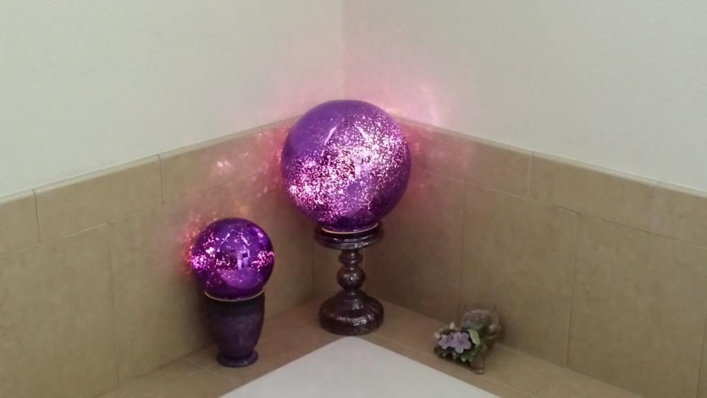 Keep in mind I just propped the smallest sphere on a candle in my bathroom, and it's not the permanent home for it. If I decide to keep the pedestal, I'll get another one for the other sphere.