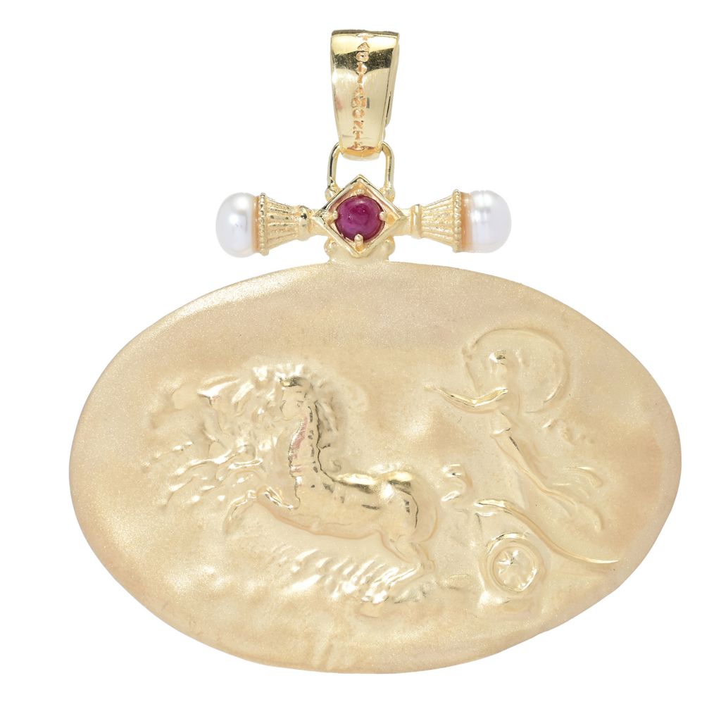 On ShopHQ that is. This is 14K solid enhancer 7.1 grams solid enhancer. But with 18K plating. So either way, you've got gold. A Roman Chariot Racer Gem: Ruby. Cultured Pearls. The length is over 2 inches. The brand is called Tagliamonte. Price $999.00. Largest showing of 14K up to 24K. Free shipping