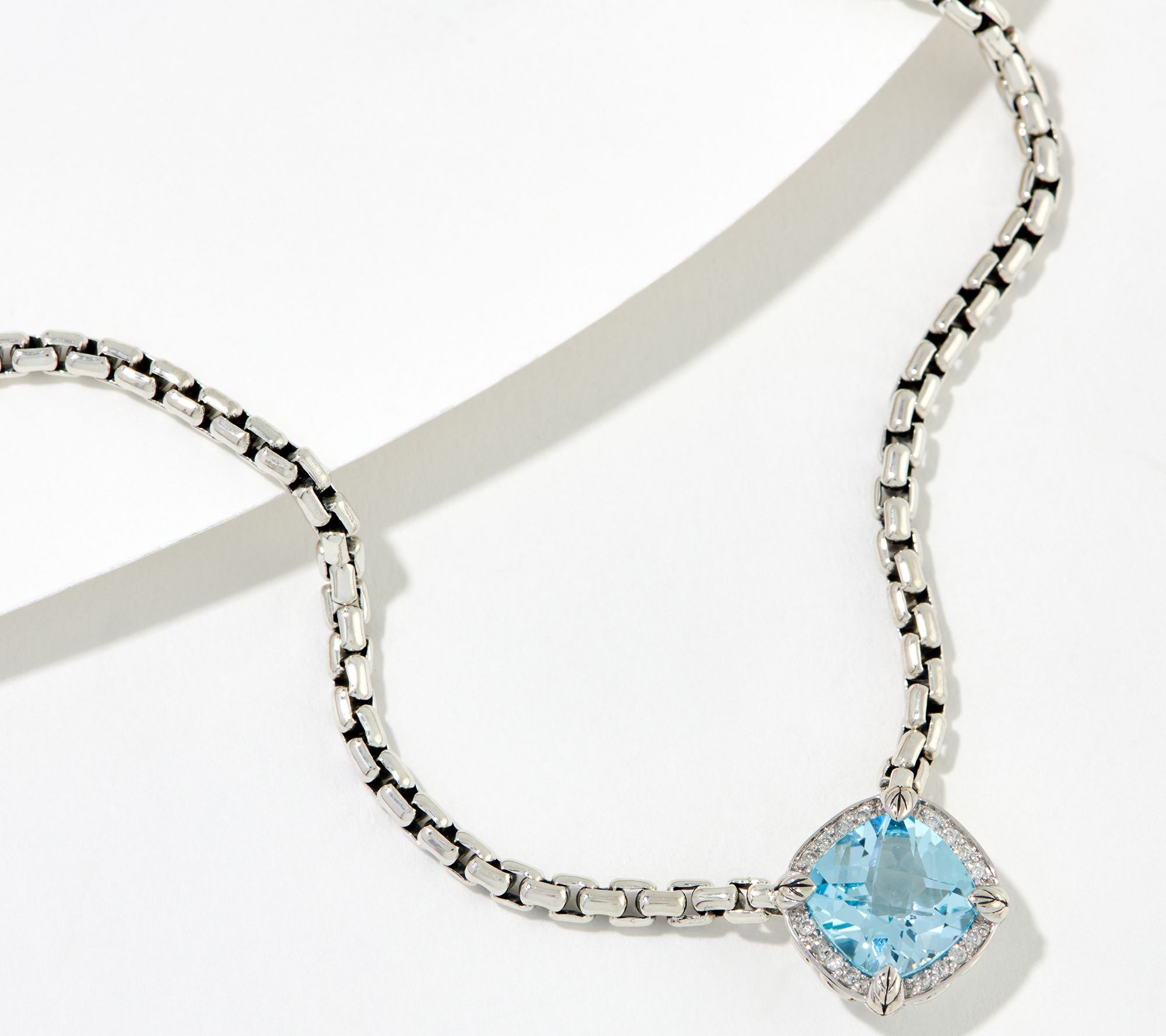 I love the look of both the necklace and the ring. The ring is a little smaller scale than many of the JAI gemstone rings. I love that! Also, the gemstones look so good surrounded by diamonds. I once ordered the necklace that was similar but just the gemstone without diamonds. I ordered it in blue topaz but had to return due to the washed out color of the stone. I always wanted that necklace, but now I think that this one will be great for me. The color seems better, as it is now called sky blue topaz. Also, it is 16 inches at its shortest. The other one was 18 inches or longer. This style just screams choker, so I am so happy about the length. I love the extender as that increases the versality. I can't wait to get it!