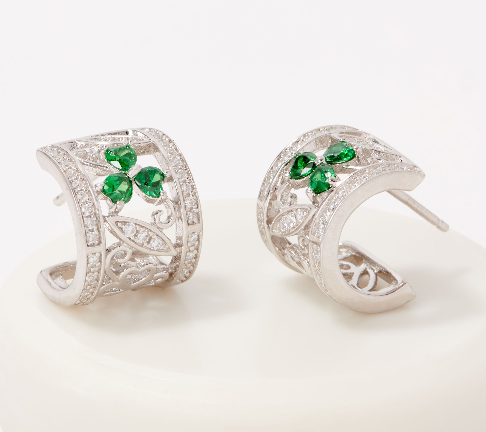 J-364437 Solvar Sterling Silver Clover & Shamrock Huggie Earrings, QVC
