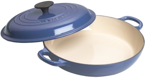 Funny I've had 2 pieces of the blue Le creuset for years and rarely used them- a small frying pan and a 2 qt Dutch oven. The Dutch oven was too small to make a roast for the family and the fry pan seemed difficult to clean after using it for eggs. Recently I bought a 5 qt Dutch oven (red enamel) from Lodge and love it. Use it all the time..just made lamb stew last night. I pulled out the Le Creuset yesterday and will revisit it again.