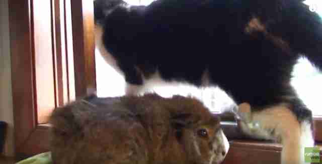 ... but then the cat got a little overexcited, and briefly scared him away. The guinea pig was embarrassed on his behalf, I'm sure.