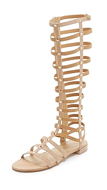 I think Shawn was wearing Stuart Weitzman gladiator sandals like these but in a darker color: