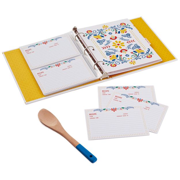 I use binders and clear plastic sheet protectors. Keeps the recipe clean in the kitchen.