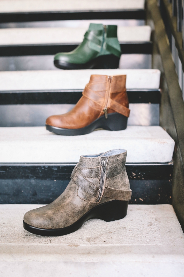 Sketchers - they are short boots, so not sure if you want long ones or not. I bought one pair prior to an event where I would be on my feet on concrete all day long - my feet were so happy at the end of the day that I wore them the second day as well. Bought a second pair the next day. They are now back in stock in several colors.