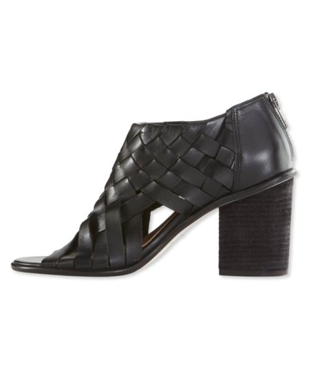 A beautifully woven open-toe bootie beautifully crafted from soft, smooth leather.